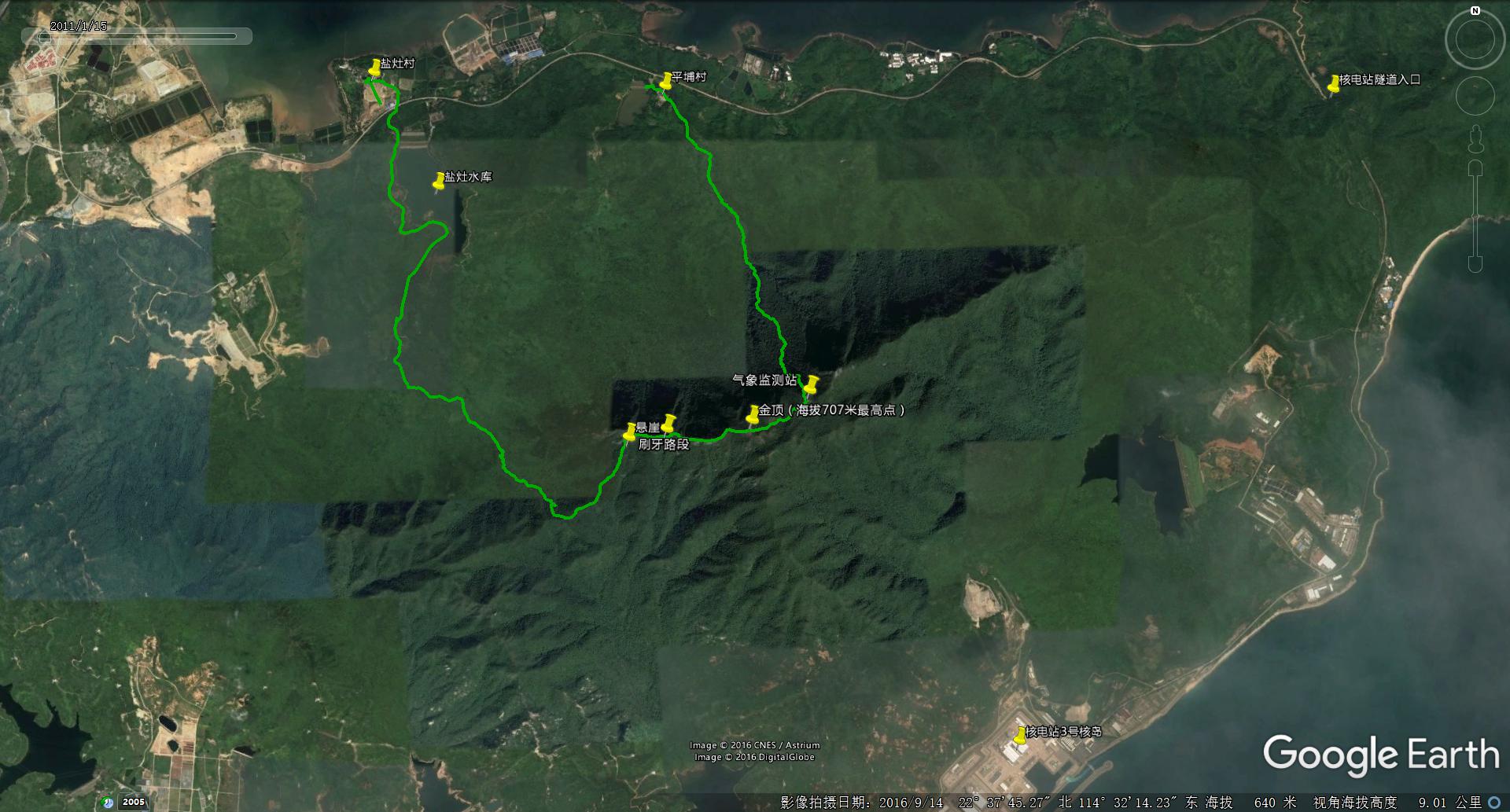 早上8:00启程,走滨河路、深盐二通道、坝光口下。若上排牙山,预计大约中午12:00在登牙悬崖处午餐,然后开始刷牙,约傍晚18:00从靠近核电隧道的小村庄下山。若走洞梓-大棚穿越,则在大鹏古城附近午餐,大约下午16:00原路返回洞梓村。择处FB后返回。请自备午餐。