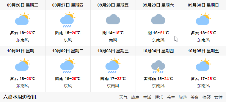 【天气状况】 预计:气温最高26℃、最低15℃,十分适于户外活动。