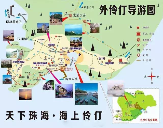 外伶仃岛位于位于珠海市东区万山群岛中,是港、深、珠、澳四大都市共享的世外桃源。面积4.23平方公里,地处珠江入海口,西距珠海市中心27海里,北距深圳蛇口29海里,香港长洲6海里、九龙11海里;东、南距南太平洋公海30海里。岛上水、电、交通、通讯等基础设施齐备。在珠海众多的海岛中,外伶仃岛天生丽质,石奇水美、优雅恬静、独具风韵,名闻遐迩;岛上冬无寒冷,夏无酷暑,四季如春,山水兼得,旅游资源丰富多彩,具有典型的亚热带雨林风景和海岛伊甸园风光,是镶嵌在珠江口与南太平洋交汇处的一颗璀璨的明珠。民族英雄文天祥《过伶仃洋》的名句“人生自古谁无死,留取丹心照汗青”,即诞生于此。外伶仃岛雄奇秀美,主峰伶仃峰高达311.8米。岛上四时花木葱茏,美不胜收。登高望远,可见群岛星罗棋布;逐浪飞舟,更觉波涛激荡,沧海横流。薰风丽日里,伶仃洋上蔚蓝相接,海天一色;薄雾黄昏时,霞绯映海,渔舟唱晚;云霓雨雾中,香江景物时隐时现,恍如梦幻中的海市蜃楼。岛上的伶仃八景、奇秀伶仃峰、奇石公园、野战工事、香港夜景等定能给你留下美好回忆。。。