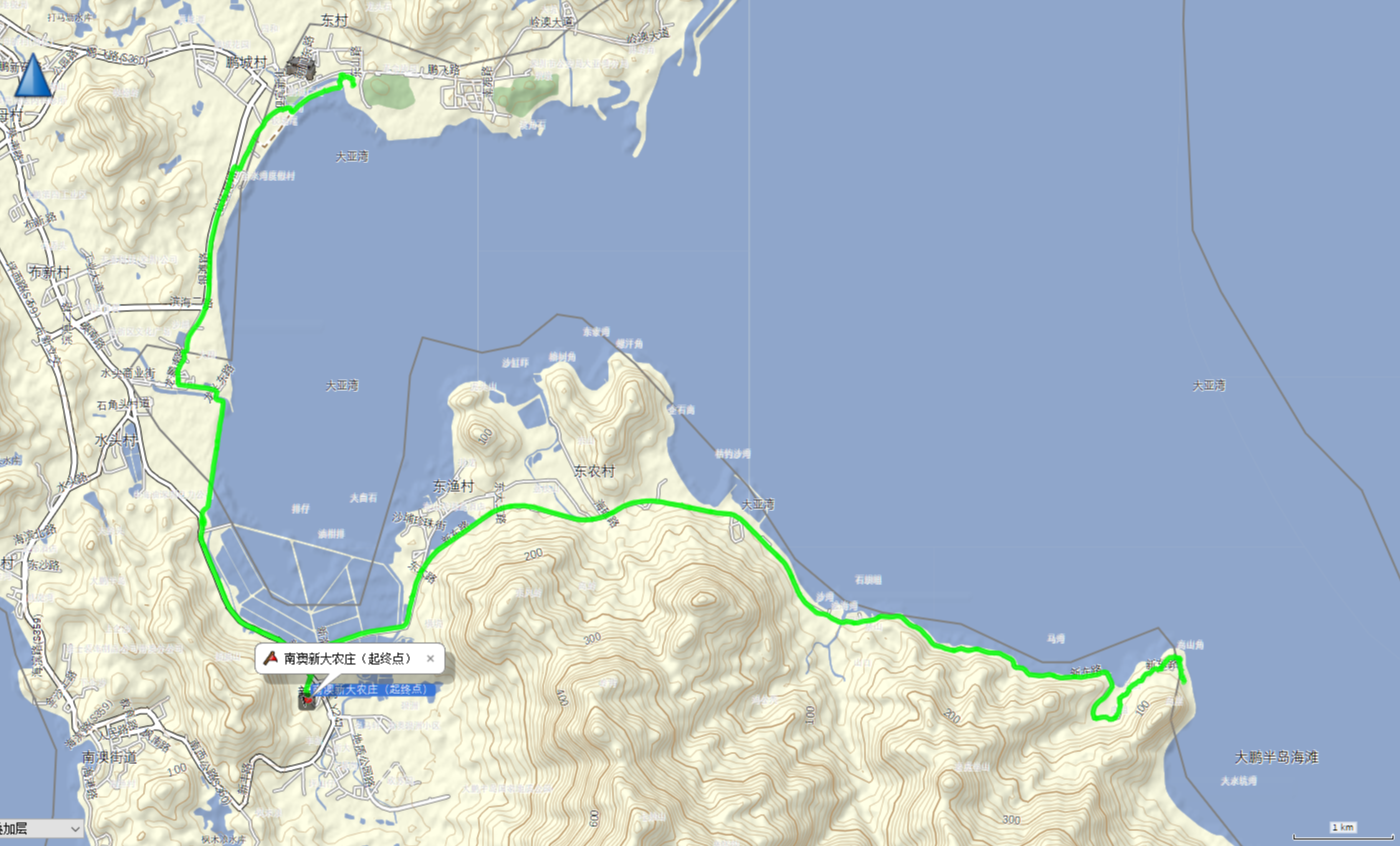 线路自新大农庄出发(出小区左转),在灯口转新东路东行至鹿咀山庄折返,在新大路灯口右转走新大路,在水头转水头后街插到银滩路(也可走新大路转水头市场再转银滩路),沿银滩路北行经较场尾至爱琴海浪漫酒店南澳店原路折返新大农庄。全程43.8公里。路线沿着海岸线走绿道,风景好,没有上下坡,沿途有补给。其中,新大-杨梅坑往返24公里,新大-较场尾往返20公里,可以根据个人条件自行调节。天气预报为多云间, 最高气温30℃,天气很好,适合户外。
