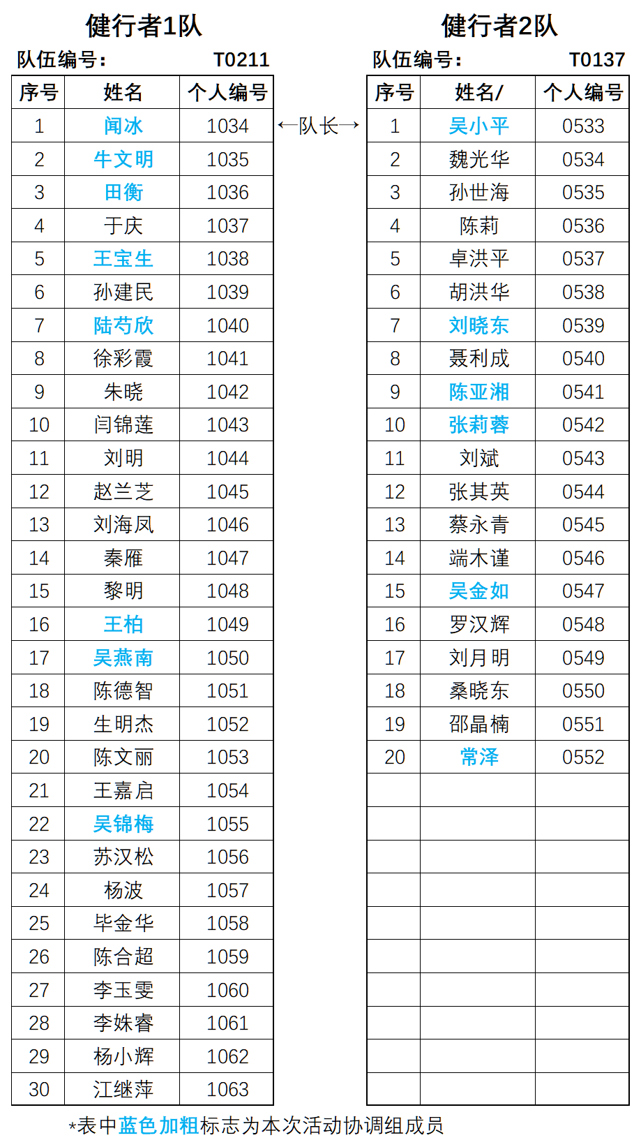 4、有紧急情况请联系附近志愿者或呼叫健协协调组成员(见队伍名单中蓝色加粗标志的队员)。