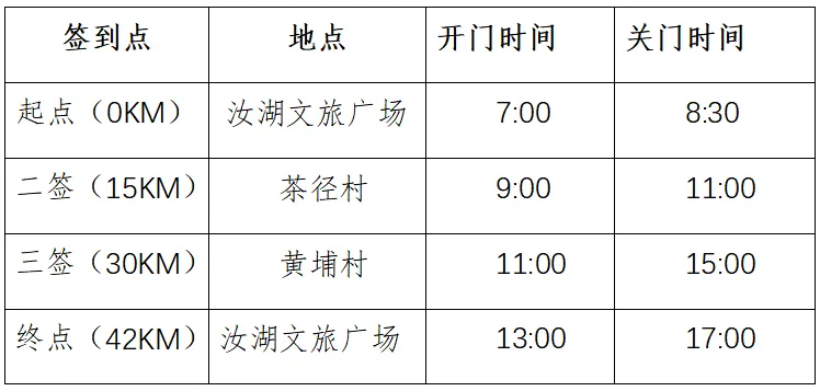 - 本次徒步全程42公里,关门时间10个小时(含休息和用餐时间),关门前完成全程的最低平均时速为4.2公里/小时,还是比较有挑战的,请大家做好权衡。